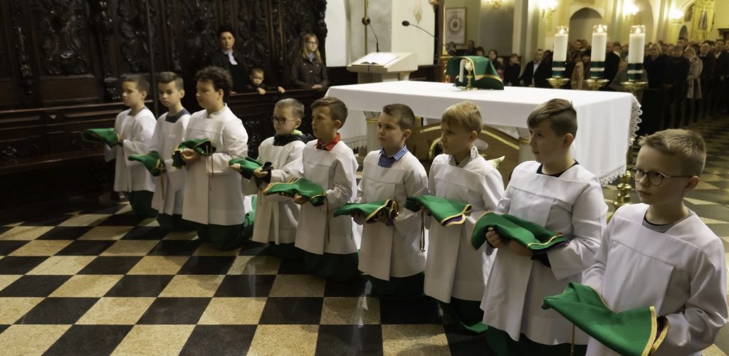 Prowadzenie liturgicznej Służby Ołtarza według formacji Sługi Bożego ks. Franciszka Blachnickiego może przyczynić się do owocniejszego przeżywania Mszy świętej. W chwili obecnej powyższa formacja ministrantów opiera się głównie na strojach liturgicznych. Istnieje możliwość głębszego ubogacenia liturgii, ale potrzebna jest większa liczba ministrantów w naszej parafii. Dlatego zachęcamy chłopców do podjęcia służby przy Ołtarzu Pańskim. Uczniowie z klas 3 SP mogą jeszcze przed I Komunią Świętą posługiwać jako kandydaci na ministrantów.