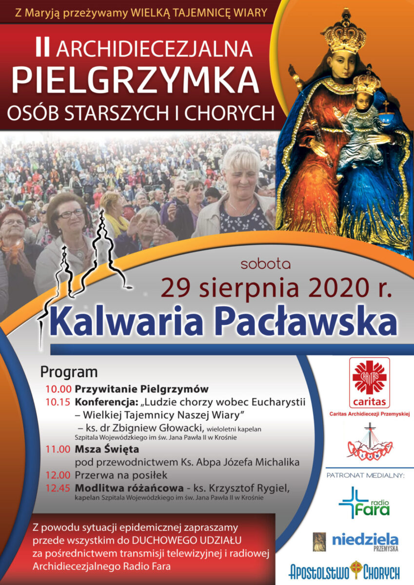 II Archidiecezjalna Pielgrzymka osób starszych i chorych, 29 VIII 2020 r. Wpis publikowano 22 sierpnia 2020 Apostolstwo Chorych Archidiecezji Przemyskiej zaprasza osoby starsze i chore w sobotę, 29 sierpnia 2020 r. na 2. Pielgrzymkę do Kalwarii Pacławskiej. Szczegóły na poniższym plakacie.